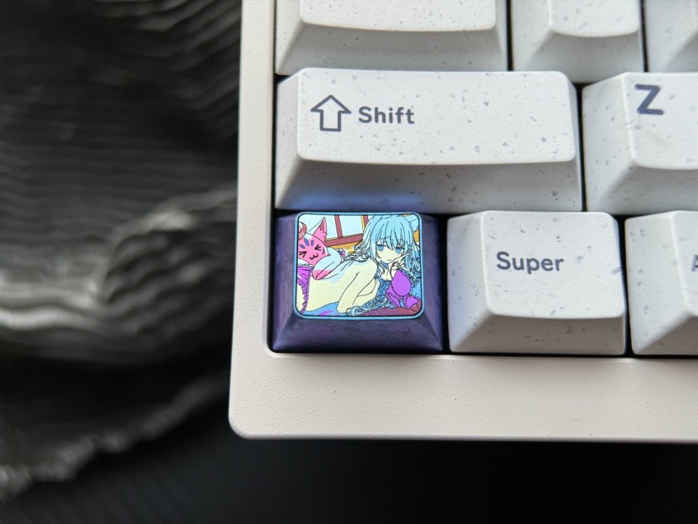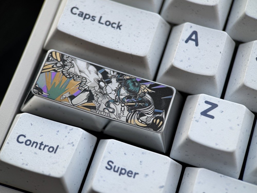 The custom-made 1.25U keycaps perfectly showcase Shirakami Fubuki’s upper body.