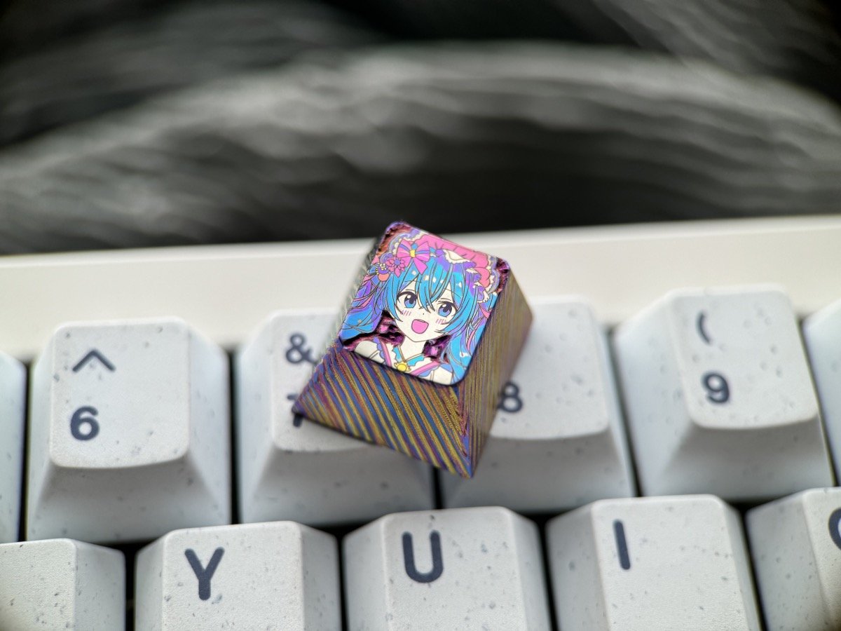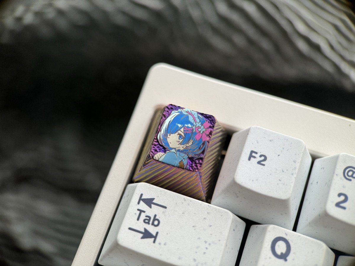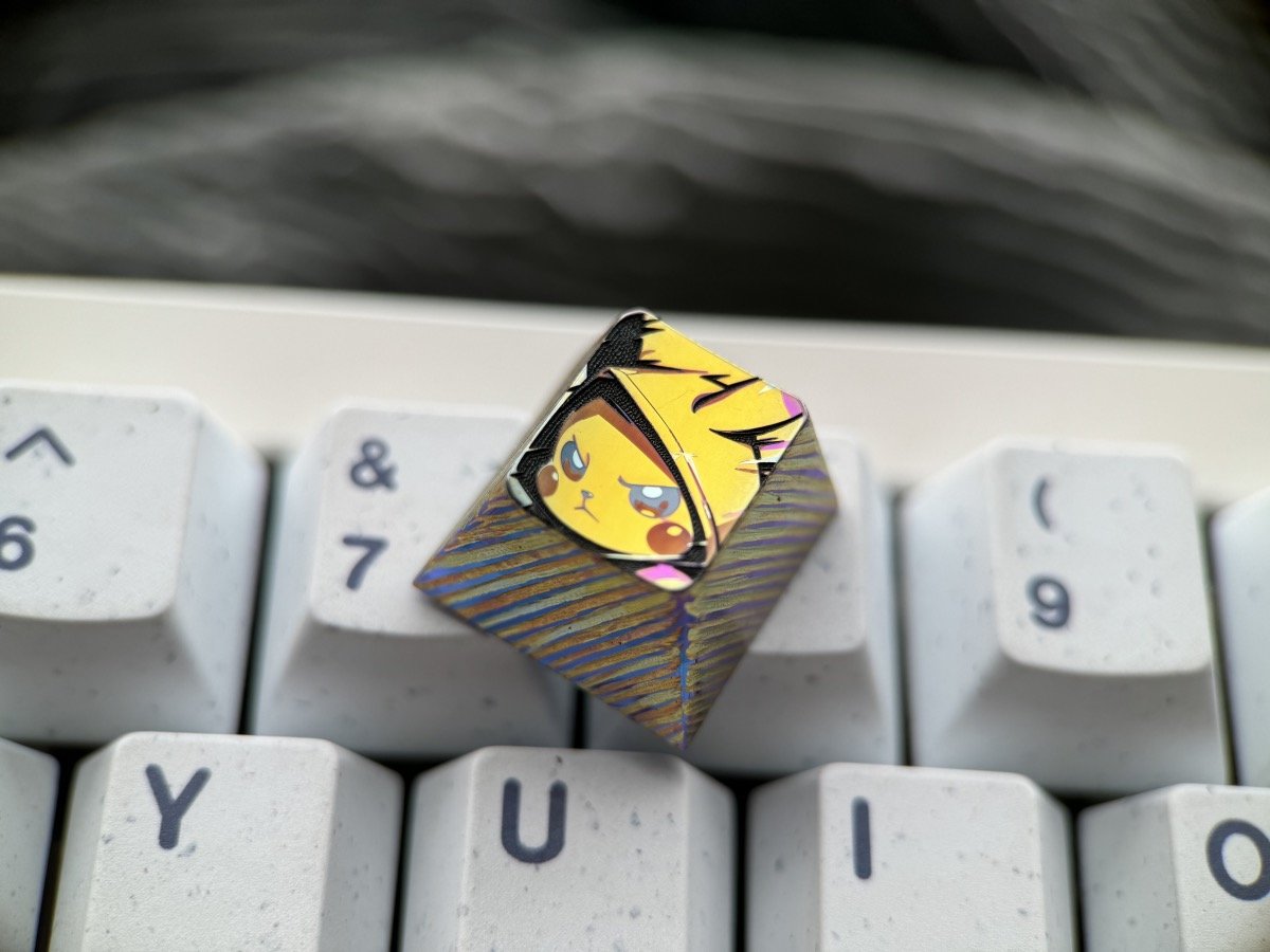 Embossed keycaps are a special technique that involves hand-carving titanium keycaps to create intricate surface textures while maintaining the flatness of the main subject (such as anime characters or cats).