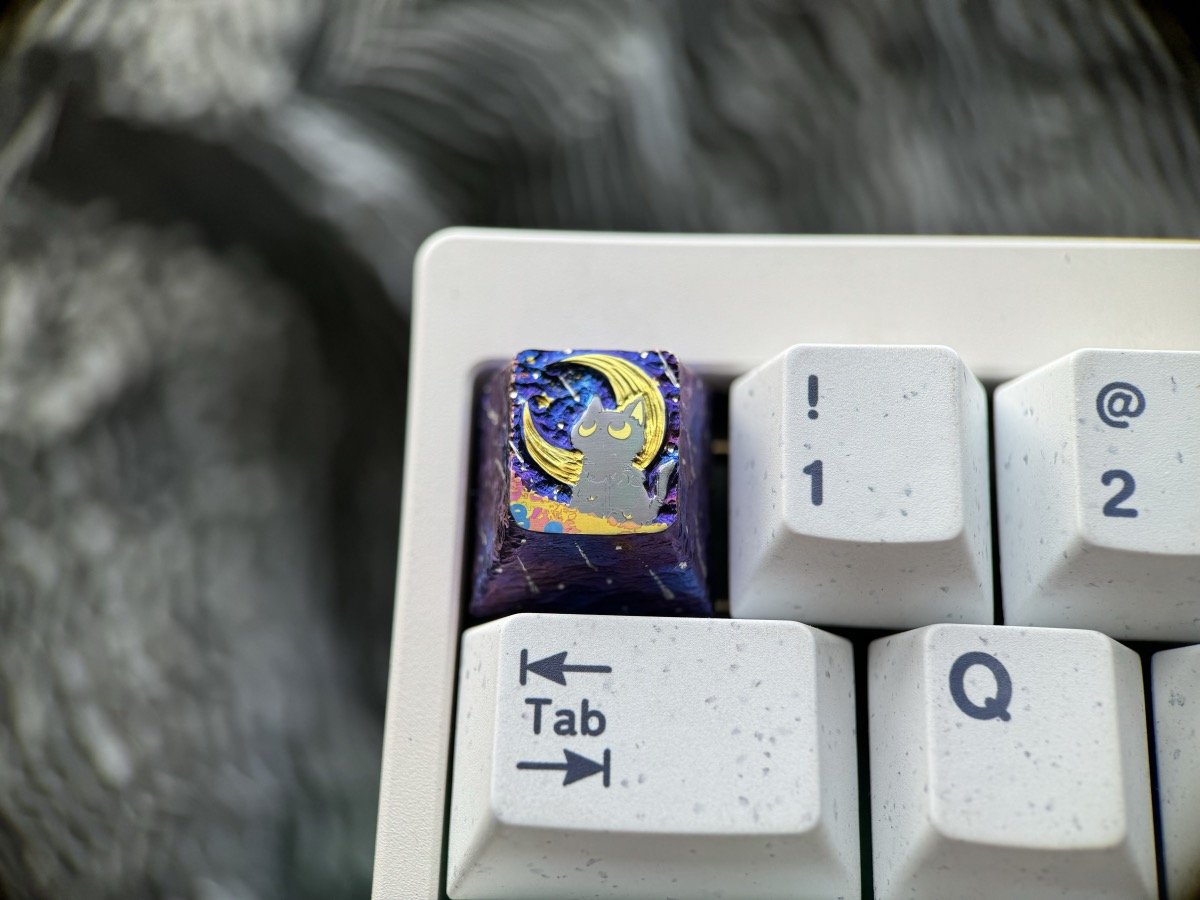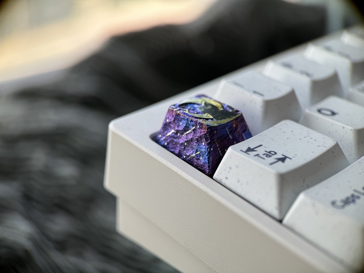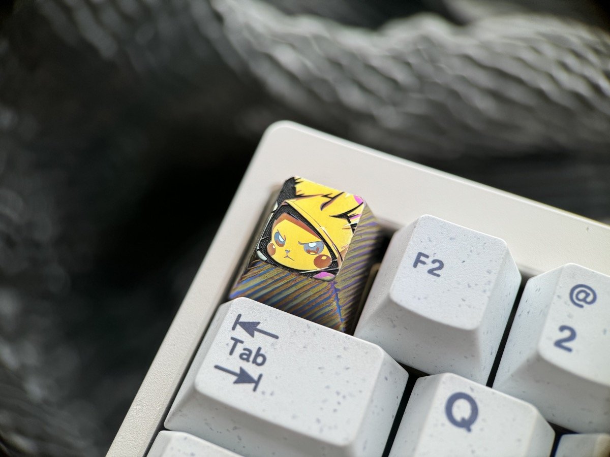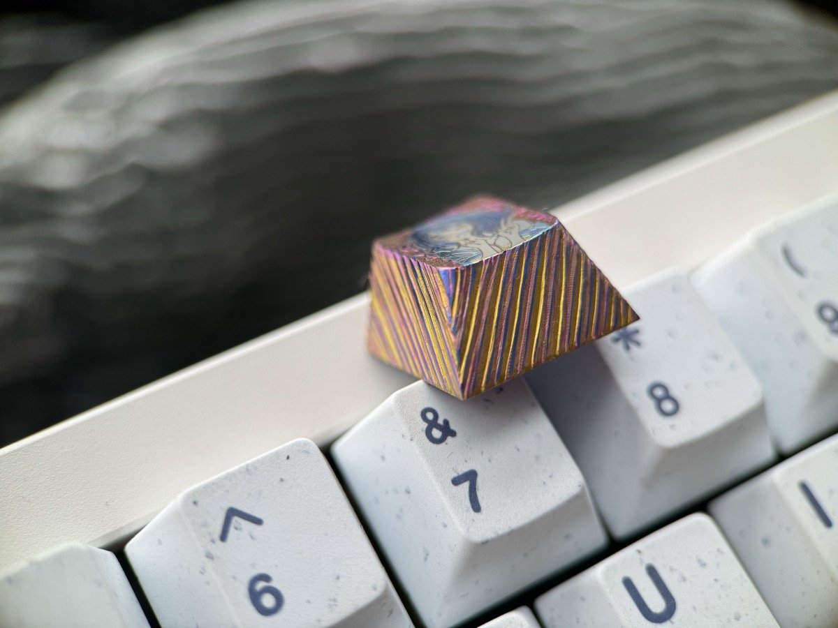Embossed keycaps are a special technique that involves hand-carving titanium keycaps to create intricate surface textures while maintaining the flatness of the main subject (such as anime characters or cats).